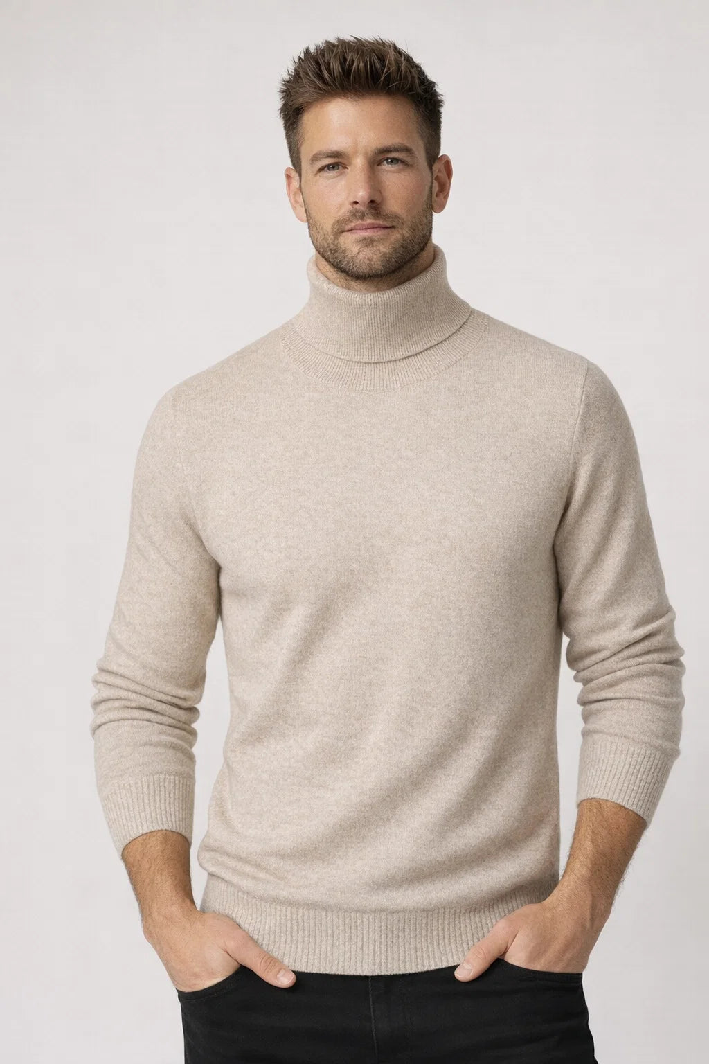 This high-quality cashmere turtleneck sweater combines style and comfort effortlessly.